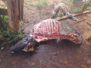 A vítima de 36 anos informou aos militares que ao chegar na fazenda encontrou 02 animais abatidos na propriedade encontrando somente parte da ossada dos animais.