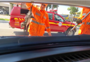 Militares do 2º Pelotão do Corpo de Bombeiros foram acionados nesta terça-feira (19), por volta das 11h00, para realizar a captura de um gambá que estava no interior de um veículo em uma concessionária localizada na avenida Faria Pereira.