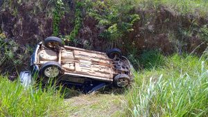 Ao chegar no local, militares se depararam com o veículo capotado e um senhor de 44 anos que estava preso entre as ferragens, ele apresentava algumas escoriações nos membros superiores e cabeça. Os militares ainda encontraram mais duas vítimas de 24 e 55 anos que estavam com algumas escoriações mais que estavam fora do veículo.