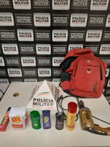 Ao ser abordado pelos funcionários, o autor confessou a autoria do crime, evadindo do local e deixando para atrás a mochila com os produtos furtados. Diante das informações, militares iniciaram os rastreamentos, conseguindo localizar o autor da ação criminosa o qual foi conduzido para a delegacia de Polícia Civil para as demais providências.