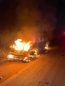 Diante dos relatos contraditórios do autor e as imagens apresentadas, militares verificaram que o autor incendiou seu próprio veículo após evadir do local do acidente e ainda comunicou a Polícia Militar sobre um roubo que na verdade não ocorreu.