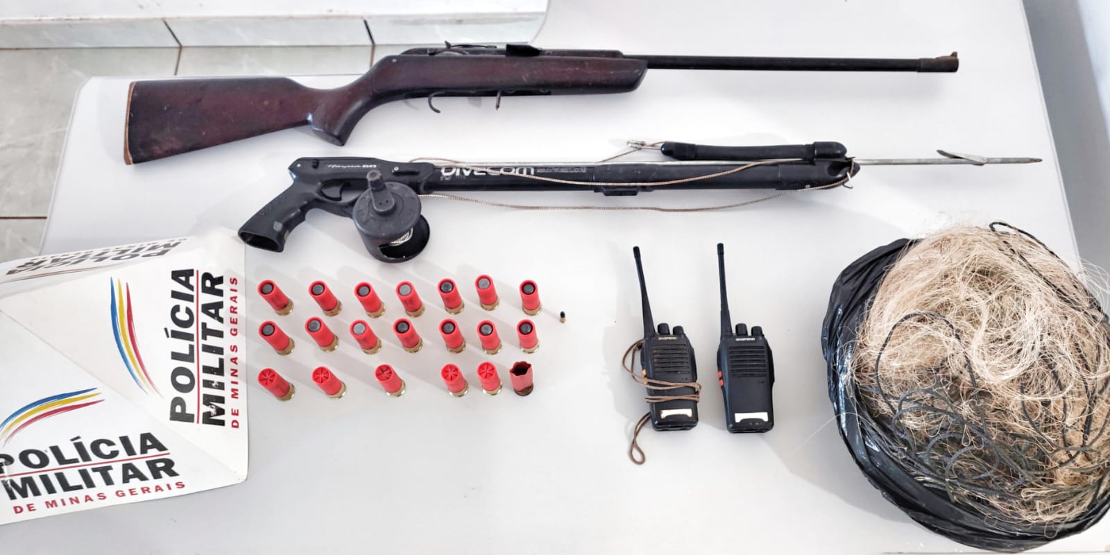 Após buscas realizadas pelos militares na residência e dependências da fazenda, foram localizados alguns materiais em situação ilegal/irregular.