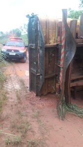 Na tarde desta quarta-feira (20), militares do 5° Pelotão do Corpo de Bombeiros e SAMU foi acionado para realizar atendimento de vitima de tombamento de caminhão na BR-365 KM 488.