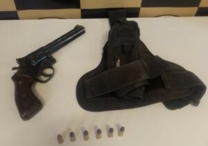 Na residência, os militares apreenderam uma arma de fogo municiada, além de acessórios. O autor foi encaminhado às autoridades competentes para as providências legais cabíveis.
