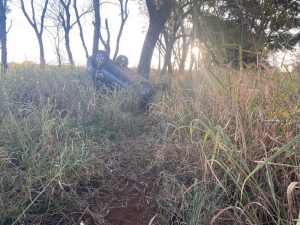 De acordo com as informações o condutor de um automóvel estava conduzindo seu veículo sem o cinto de segurança sentido a Patrocínio e que o mesmo ao desviar de um caminhão perdeu o controle direcional do veículo capotando logo em seguida.