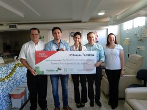 O oitavo repasse da Campanha do Troco, realizada pela rede de Farmácia Nacional, foi entregue nesta quinta-feira (12) ao Hospital do Câncer de Patrocínio. Na ocasião, foi entregue o valor de R$ 9.500,02, através das doações de clientes e não clientes, que contribuíram durante três meses com moedas. Desde que foi iniciada a campanha, em março de 2017, já foi repassado ao HC o valor total de R$ 97.868,04.