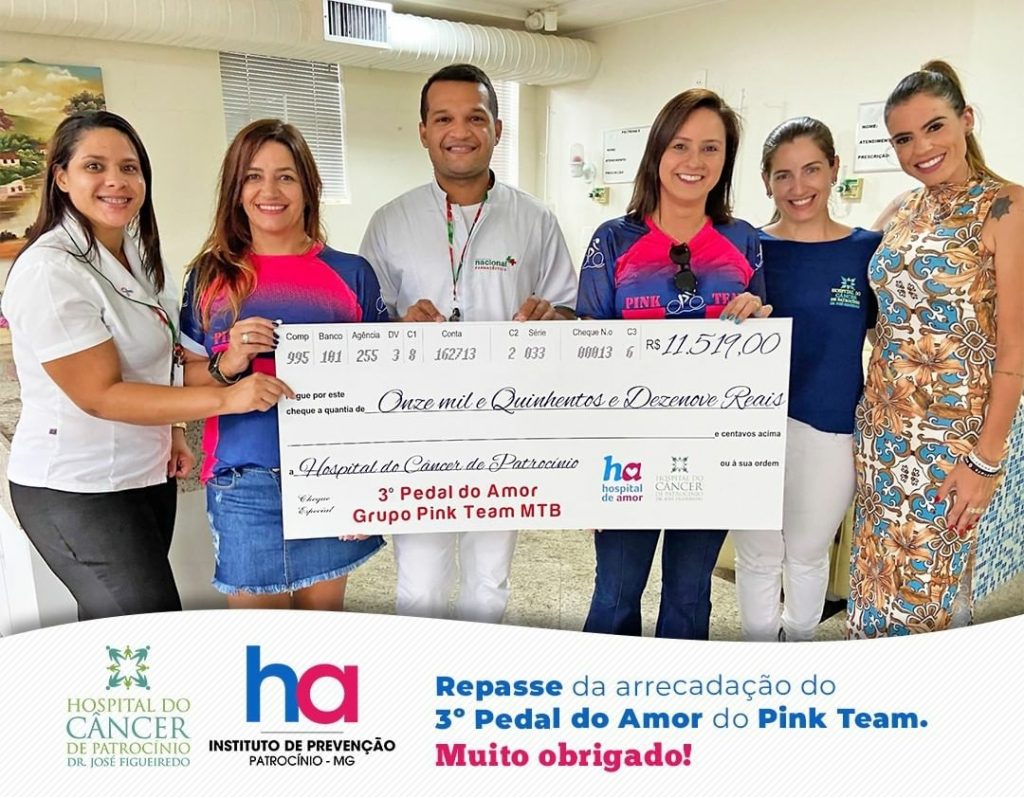 Na última sexta-feira (26) o Hospital do Câncer de Patrocínio recebeu dois repasses, um do 3º Pedal do Amor evento organizado pelo Grupo Pink Team e outro do Grupo Villa, que conta com as lojas Villa Bebê e Villa Teen.