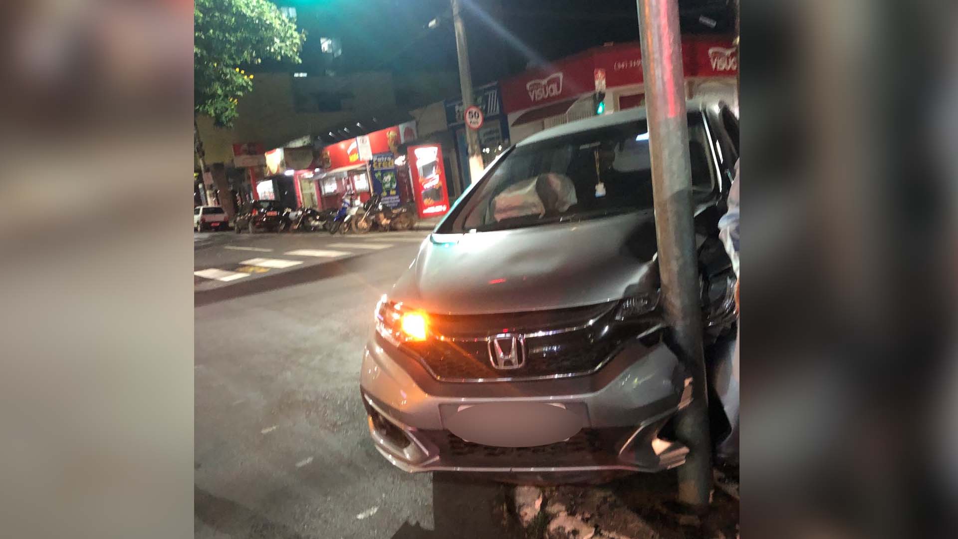 Idoso perde o controle direcional de veículo e bate em poste no Centro de Patrocínio
