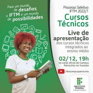 O Instituto Federal do Triângulo Mineiro – IFTM Campus Patrocínio estará realizando uma live hoje a partir das 19h visando apresentar os cursos técnicos integrados ao ensino médio do Instituto.