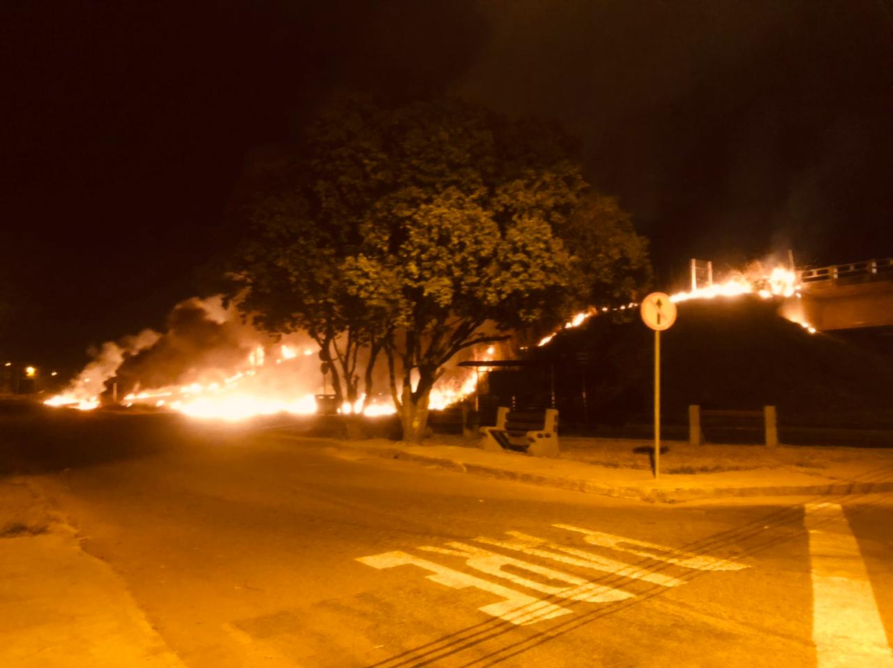 Na noite deste último sábado (03), um incêndio atingiu as margens da BR-365, nas proximidades do Condomínio Por do Sol, as chamas se alastraram destruindo toda a vegetação nas proximidades do local.