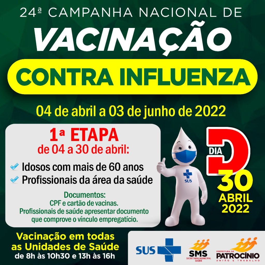 Teve início nesta segunda-feira (04) e segue até o dia 03 de junho, a 24ª Campanha de vacinação contra Influenza.