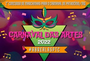 A Secretaria de Cultura e Turismo de Patrocínio abriu as inscrições para o 2º Concurso de Marchinhas Carnavalescas, intitulado “Carnaval das Artes 2022”. O concurso tem o intuito de incentivar a criatividade dos compositores locais.