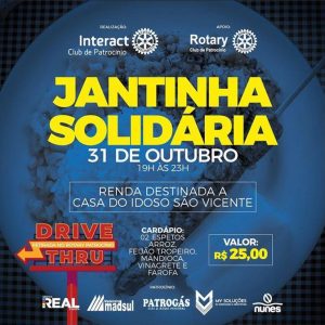 O Interact Clube de Patrocínio realiza no próximo sábado (31), a Jantinha Solidária, evento drive thru em prol da Casa do Idoso Recanto São Vicente.