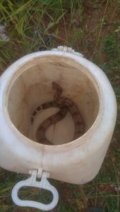 Já presentes no local militares realizaram a transferência do animal para recipiente que pertence a corporação. Após os trabalhos o animal foi solto de forma segura em seu habitat natural.