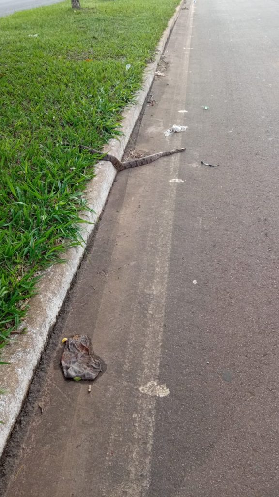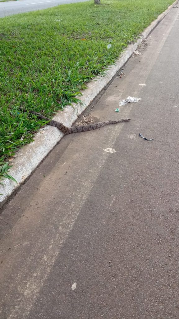 Jibóia é encontrada no canteiro central da avenida Faria Pereira