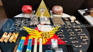 No quarto dele, foram localizados diversos entorpecentes e materiais utilizados na comercialização de drogas, entre eles: