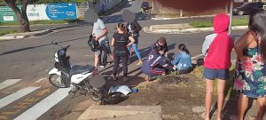 Uma jovem de 23 anos, foi socorrida para atendimento médico depois se envolver em um acidente na manhã desta quarta-feira (08), no centro da cidade.