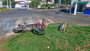Ao ser atingida por um automóvel, a jovem, que conduzia sua motocicleta, foi arremessada e caiu no canteiro central da Avenida Faria Pereira.