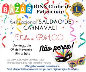 Lions Clube de Patrocínio realiza Saldão de Carnaval neste domingo (07)