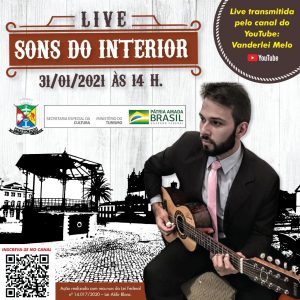 No domingo, segundo a secretária, Vanderlei Melo, com a Live “Sons do Interior”, apresentará instrumentais de viola caipira, relembrando saudosos clássicos da música raiz e popular, brasileira e internacional, com declamação de poemas temáticos. Terá início a partir das 14h, com transmissão ao vivo pelo canal do youtube Vanderlei Melo.