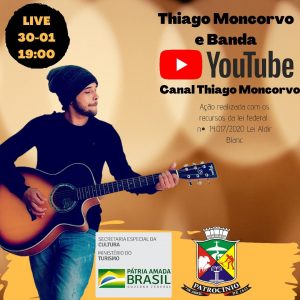 Sábado (30), haverá rock, pop rock e internacional na Live Thiago Moncorvo e Banda. A transmissão acontecerá a partir das 19h no canal do youtube Thiago Moncorvo, conforme a secretária de cultura Maria Aparecida Palucci explicou.