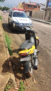 A motocicleta foi localizada e removida ao pátio do guincho credenciado, sendo o menor apreendido e apresentado a autoridade de Polícia Judiciária para medidas subsequentes.