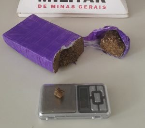 Militares abordaram um menor infrator, e lograram êxito em localizar uma barra de maconha, um tablete de maconha, uma bucha de maconha e uma balança de precisão.