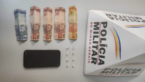 Durante busca pessoal militares localizaram no bolso do autor oito pedras de substância semelhante à crack, um aparelho celular e R$52,00 em dinheiro.