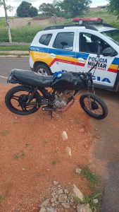 Na tarde deste domingo (18), por volta das 15h30, durante patrulhamento pela Av. Marciano Pires, os militares avistaram dois indivíduos transitando em uma motocicleta sem placa de identificação, os quais utilizavam o veículos para promover desordem.