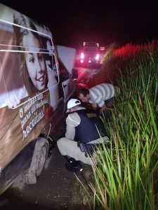 Militares percebeu que o motorista estava sozinho em meio a escuridão da rodovia tentando trocar o pneu então pararam a viatura e foram informados pelo condutor que o macaco que ele possuía estava danificado e não conseguiria fazer a troca do pneu.