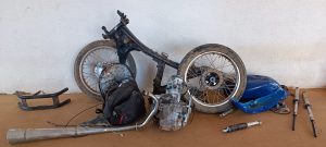 Motocicleta furtada no último domingo (11) é encontrada toda desmontada, autores foram presos
