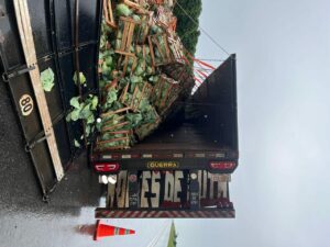 Após acionamento, a Polícia Militar Rodoviária, atendeu sinistro na BR-146, km 68, envolvendo uma Carreta Scania com placas do Paraguai tombada obstruindo parte da pista e parte da carga de Repolhos esparramado e margens e na via.