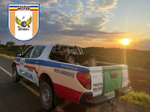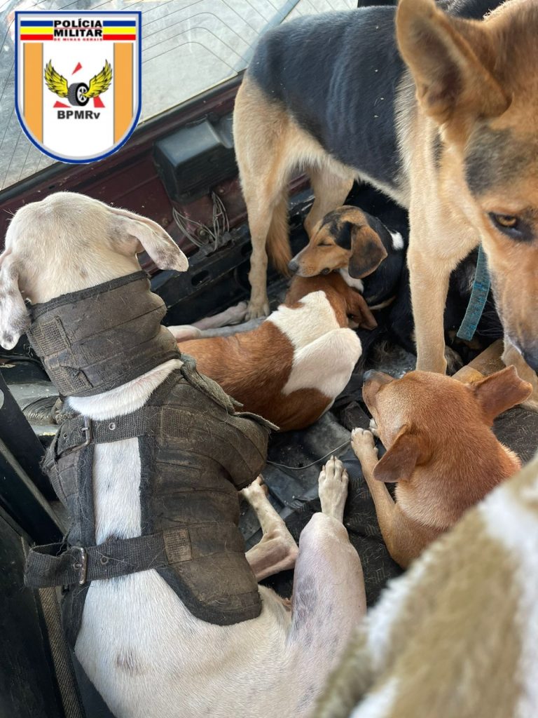 No interior do automóvel, os policiais encontraram cinco cães utilizados na caça de javalis, eles foram deixados com a esposa do autor, além de uma fisga (estilingue) que foi apreendido.
