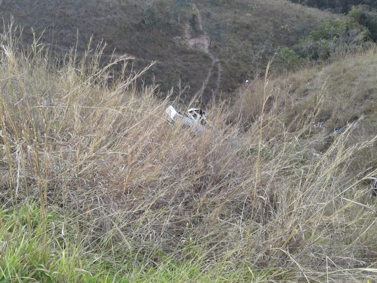 O veículo caiu numa ribanceira, local de difícil acesso, sendo localizado por um fazendeiro, que acionou a Polícia Militar.