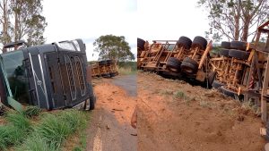 Na tarde desta quinta-feira (03), a Polícia Militar foi acionada para fazer um registro de uma ocorrência de tombamento de uma carreta bitrem na MG-188, que liga Patrocínio a Coromandel.