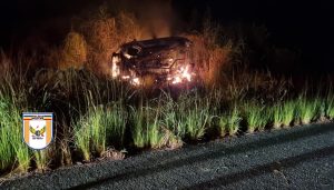 Com o impacto do acidente o veículo pegou fogo ficando completamente destruído pelas chamas.