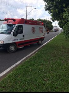 A condutora da motocicleta foi socorrida pelos profissionais do Samu com algumas escoriações pelo corpo e com suspeita de fratura em uma das pernas.