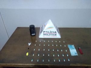 Uma denúncia levou uma guarnição da Polícia Militar até indivíduos que estariam traficando drogas na região do centro esportivo Veio Didino, no bairro Marciano Brandão. Os militares fizeram a abordagem de um jovem de 20 e de um adolescente de 16 e apreenderam 40 cápsulas de cocaína, uma bucha de maconha e dois papelotes de coca. Com um dos autores foi encontrada a quantia de R$ 100,00 em dinheiro. Os dois foram entregues na delegacia de plantão da Polícia Civil.