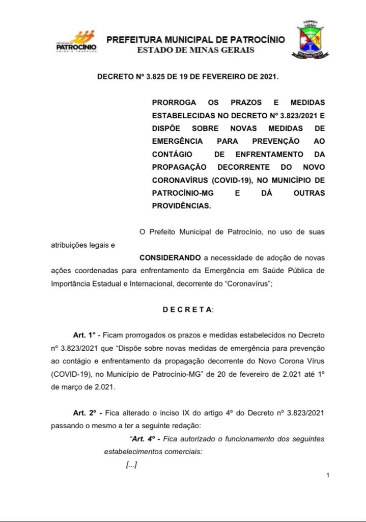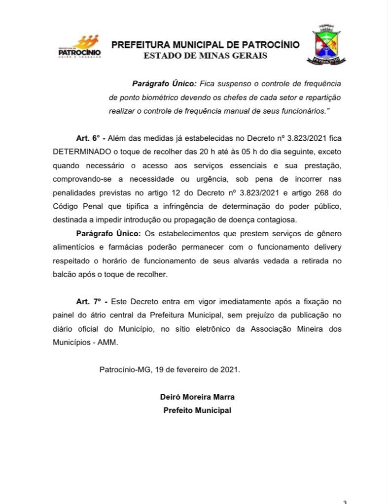 Com informações: Decreto municipal n° 3.825 de 19/02/2021