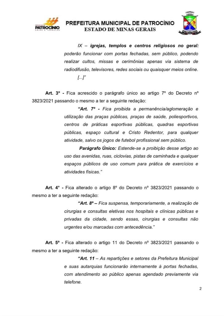 Na manhã desta sexta-feira (19), durante reunião do Comitê de Enfrentamento à Covid-19 na cidade de Patrocínio, houve uma nova análise do cenário da pandemia no município, o que acarretou a publicação de um novo decreto com medidas ainda mais rígidas para prevenção do contágio da doença.