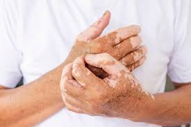 Vitiligo: caracteriza-se por grandes manchas brancas causadas pela perda de melanina. Pode afetar qualquer parte do corpo, até mesmo o interior da boca ou mesmo pelos dos cílios e sobrancelhas. Sua causa não é totalmente conhecida, mas acredita-se que ocorra devido a alteração genética ou alteração no sistema imune, onde o corpo passa a combater os melanócitos, células responsáveis pela produção de melanina. Podem surgir espontaneamente ou após traumas físicos e emocionais.