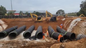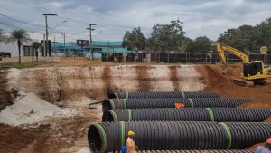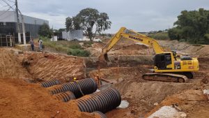 A ideia inicial seria colocar os tubos até a rua José Feliciano, em seguida a terraplanagem recebendo automaticamente a malha asfáltica, fechando a via fazendo a compactação colocando como principal objetivo o cascalho, meio fio e os canteiros, dentro dos próximos dias e assim liberando o acesso daquele local.
