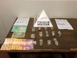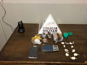 Também no bairro São Vicente, um indivíduo conhecido por “Feijão” foi abordado em um Uno, e durante o desenrolar da ocorrência, a Polícia Militar apreendeu 600 gramas de maconha, 100 gramas de crack (que poderiam render 300 pedras da droga) e nove dolas de cocaína, além de uma munição, uma balança de precisão, dois celulares e um rádio de comunicação na frequência da Polícia. Foi dado voz de prisão a J.S.F., 26 anos. Todos os envolvidos foram entregues na Delegacia de plantão da Polícia Civil em Patrocínio.