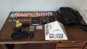 Após monitoramento de uma residência na rua Cândido Dias, no bairro Serra Negra, foi feita a abordagem de J.C.S.S., 41 anos, e durante buscas em seu imóvel, os policiais localizaram 11 papelotes contendo cocaína, R$ 262,00 e materiais usados provavelmente como moeda de troca por drogas e para o tráfico. O suspeito foi preso e entregue na delegacia de plantão da Polícia Civil junto com os materiais apreendidos.
