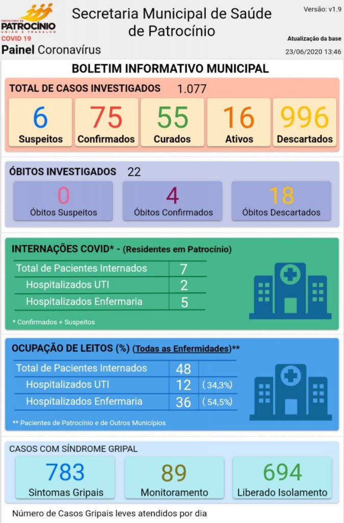 Novo boletim epidemiológico de coronavírus em Patrocínio foi divulgado nesta terça-feira (23) pela Secretaria Municipal de Saúde.