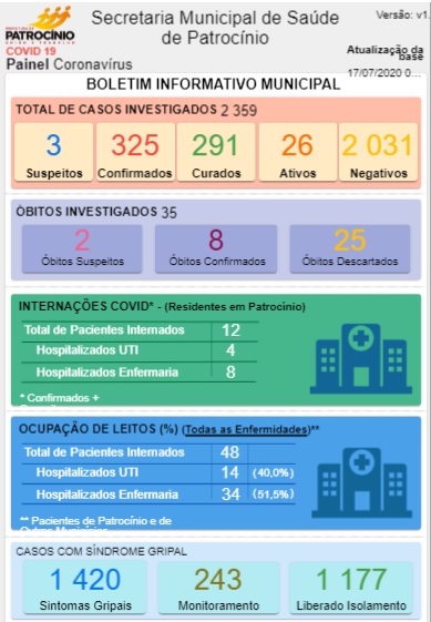 O novo boletim epidemiológico de coronavírus foi divulgado na manhã desta sexta-feira (17) pela Secretaria Municipal de Saúde de Patrocínio.
