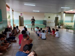 Na oportunidade, militares conversaram com alunos do 3º, 4º e 5º ano do ensino fundamental I, enfatizando a importância de pensar antes de tomar decisões e escolher bem as amizades.