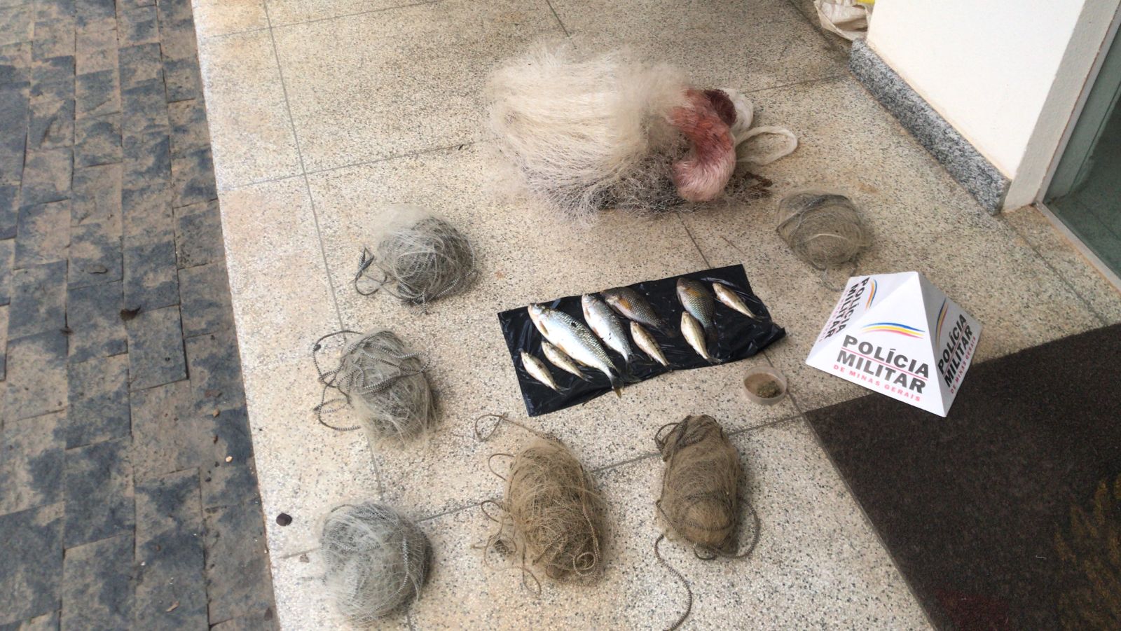 Durante as abordagens, foi abordado um automóvel, conduzido por um indivíduo de 32 anos, e localizado em seu interior uma porção de substância análoga à maconha, bem como pescados e diversas redes e tarrafas utilizadas na prática criminosa de pesca predatória.