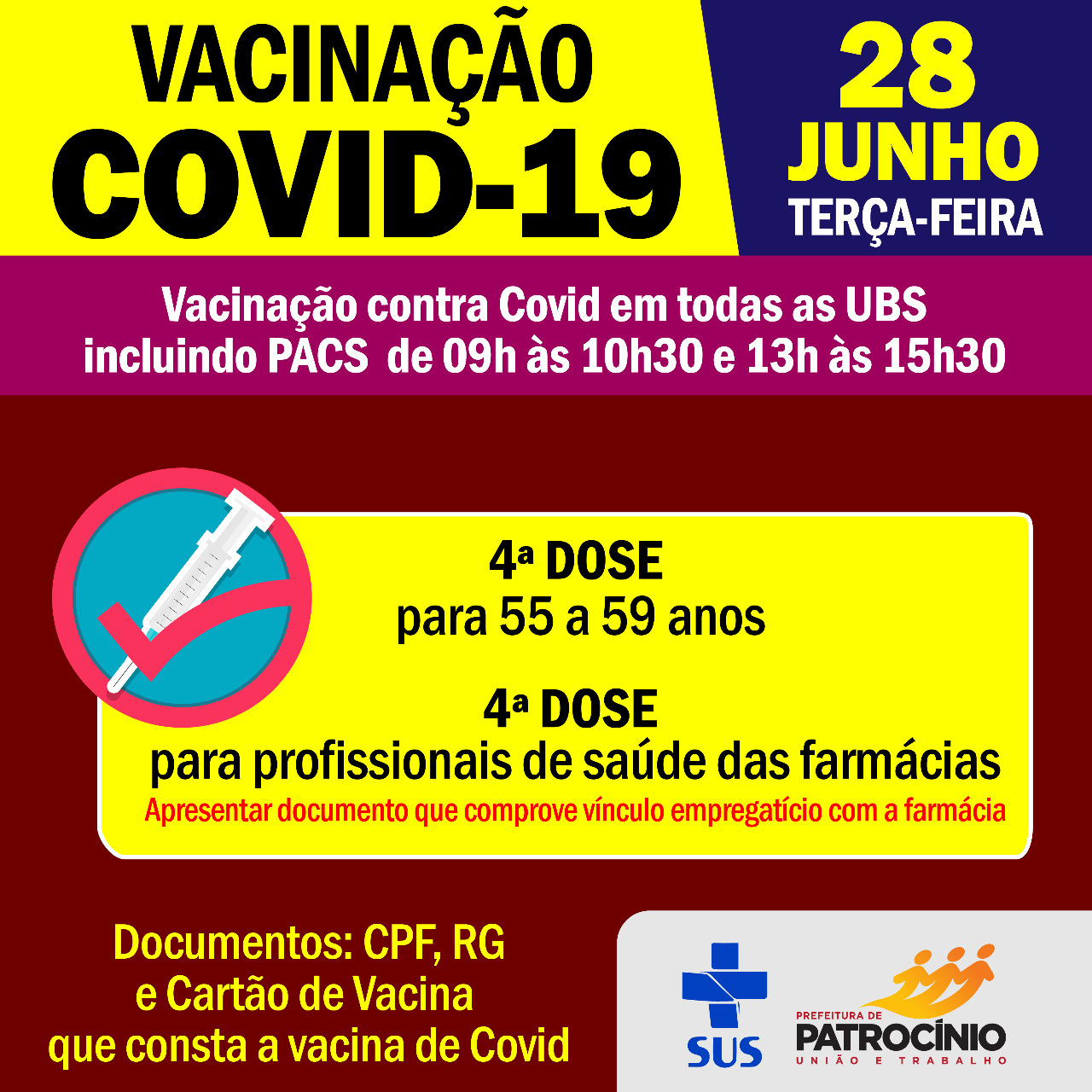 Pessoas entre 55 a 59 anos e profissionais da saúde das Farmácias recebem a 4ª dose da vacina contra Covid-19 nesta terça-feira (28)