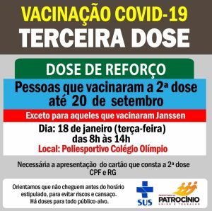 Nesta terça-feira (18) mais um público recebe a dose de reforço contra Covid-19, desta vez trata-se de pessoas que vacinaram a segunda dose até o dia 20 de setembro, com exceção daqueles que receberam a Janssen.